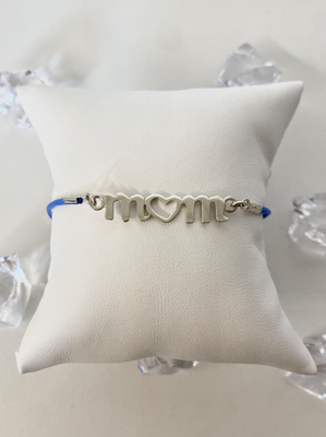 Sznurkowa bransoletka Mom niebieska, srebro 925, dla mamy