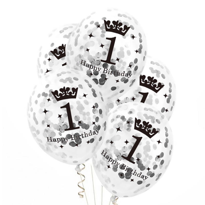 Balon z konfetti Srebrnym na Roczek, 1 urodziny HAPPY BIRTHDAY, 30cm 1 szt.