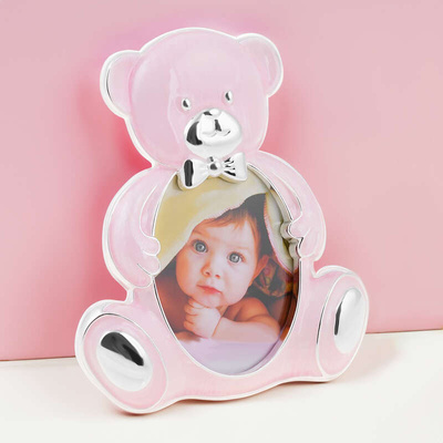 Ramka na Zdjęcie Różowy Miś Pamiątka Chrzest Roczek Dedykacja