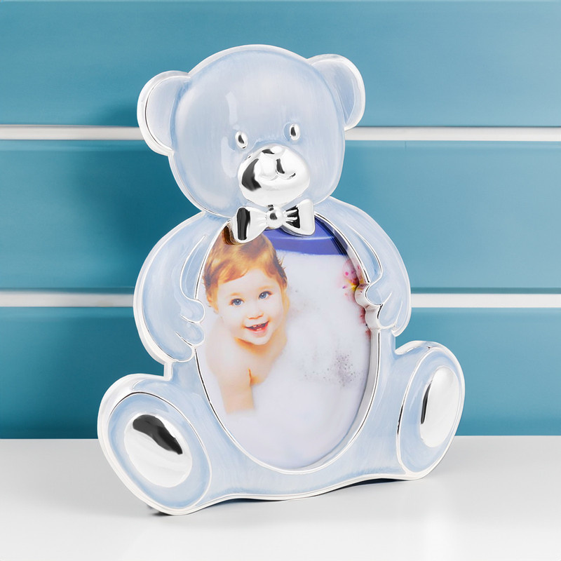 Ramka na Zdjęcie Błękitny Miś Pamiątka Chrzest Roczek Dedykacja