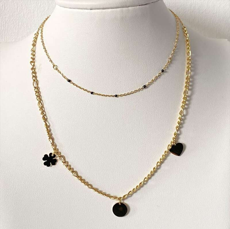 Podwójna celebrytka ze stali 316L: serce, kółko, koniczynka
