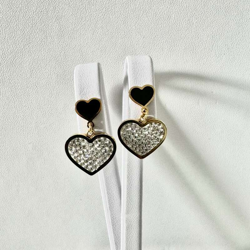 Stalowe kolczyki serca z kryształkami i czarnymi / Stal 316 L