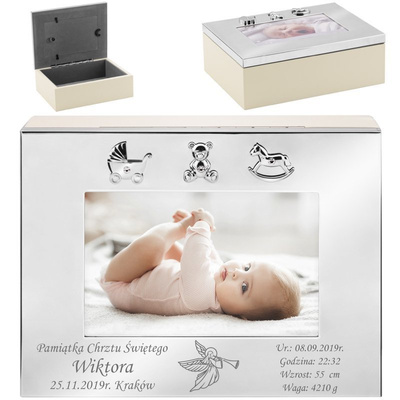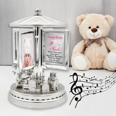 Pozytywka posrebrzana z grawerem / Prezent na chrzest dla dziewczynki.