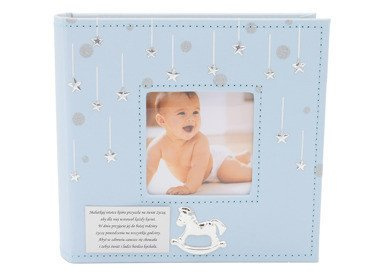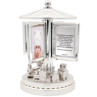 Posrebrzana niebieska karuzela z konikami Grawer / Prezent na chrzest dla chłopca