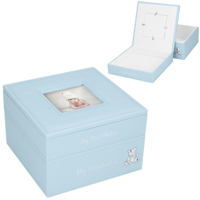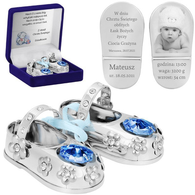 Skarbonka Błękitny Bucik z grawerem / Pudełko z dedykacją / Prezent na chrzest