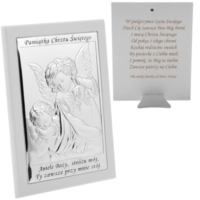 Obrazek Z Aniołem Stróżem Na Chrzest Posrebrzany Grawer