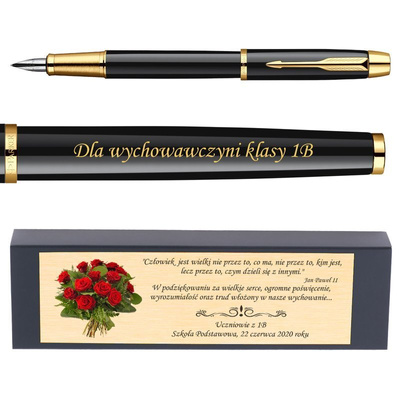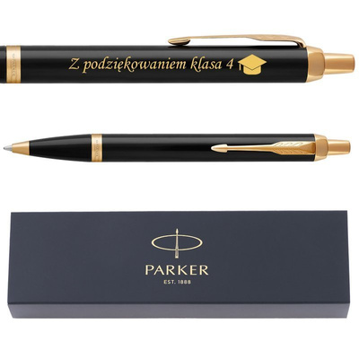 Zestaw Pióro Wieczne Długopis Parker IM Black GT z Grawerem