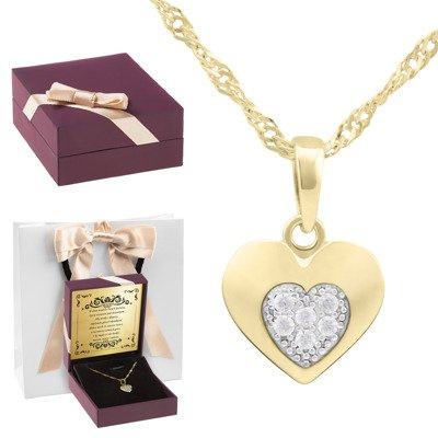 Złoty medalik z łańcuszkiem pr.585 / Matka Boska w kształcie serca / Z dedykacją.