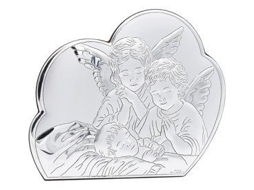 Posrebrzany obrazek Anioł Stróż na Chrzest z grawerem laserowym