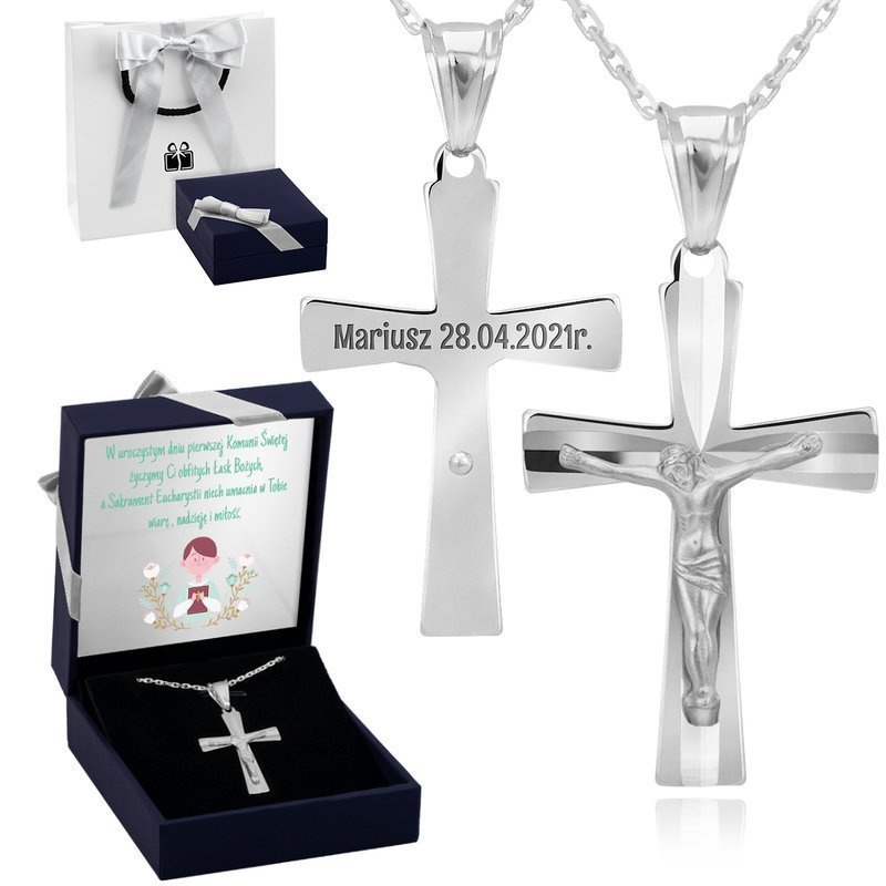 Srebrny krzyżyk z Jezusem z łańcuszkiem / dla mężczyzny, chłopca / z Grawerem i Dedykacją
