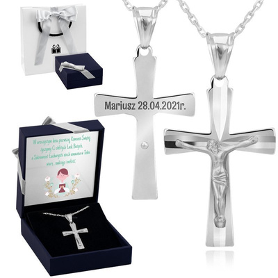 Srebrny 925 Krzyżyk z Jezusem Komunia Chrzest Grawer