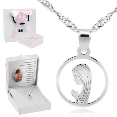 Srebrny medalik Matka Boska z dzieciątkiem Dedykacja