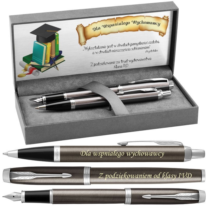 Parker IM Dark Espresso CT z grawerem na długopisie i etui