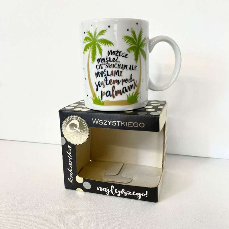 Porcelanowy kubek Pod palmami 300ml zapakowany w kartonik na upominek