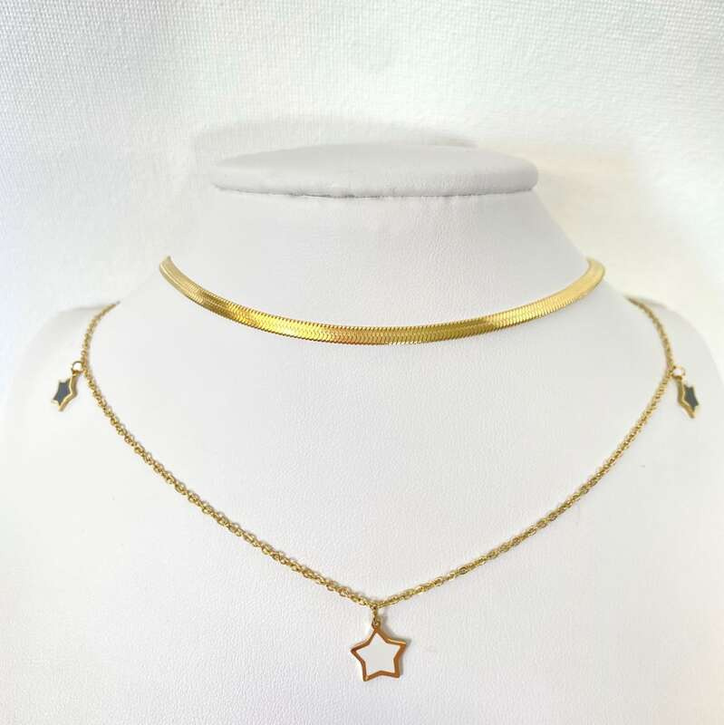 Stalowy naszyjnik z gwiazdkami i kolorowymi koralikami / Stal 316L