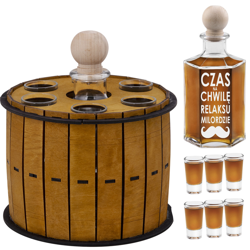 Beczka z Karafką i Kieliszkami – Zestaw Prezentowy z Indywidualnym Grawerem