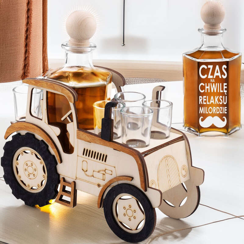 Komplet do alkoholu Traktor: karafka i kieliszki z grawerem