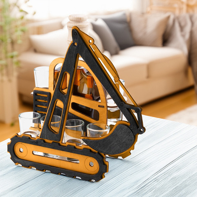 Prezent dla mężczyzny: karafka i kieliszki Koparka z grawerem