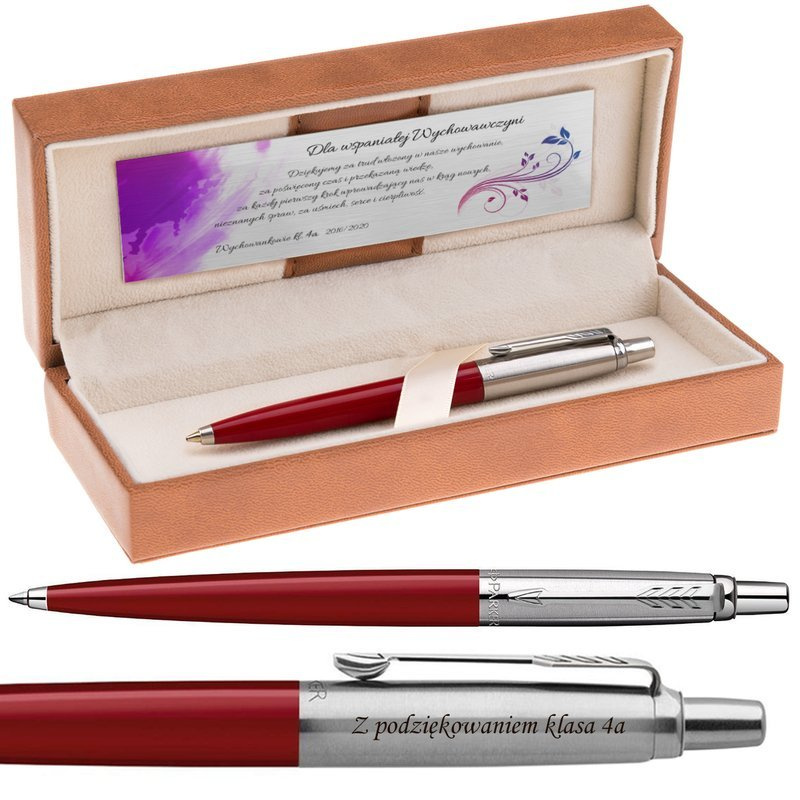 Długopisami marki Parker posługują się nie tylko znane i lubiane osobistości. Każdy może po nie sięgnąć i to w wariancie z indywidualnym grawerem. Długopis metalowy charakteryzuje się trwałością i estetyką wykonania. Długopis marki Parker to gotowy i wyjątkowy pomysł na prezent na każdą okazję. Można podarować go bliskim lub w charakterze upominku biznesowego. Możliwość spersonalizowania długopisu za sprawą indywidualnego grawerunku to sposób na to, by nadać mu w pełni unikatowy i niepowtarzalny charakter.