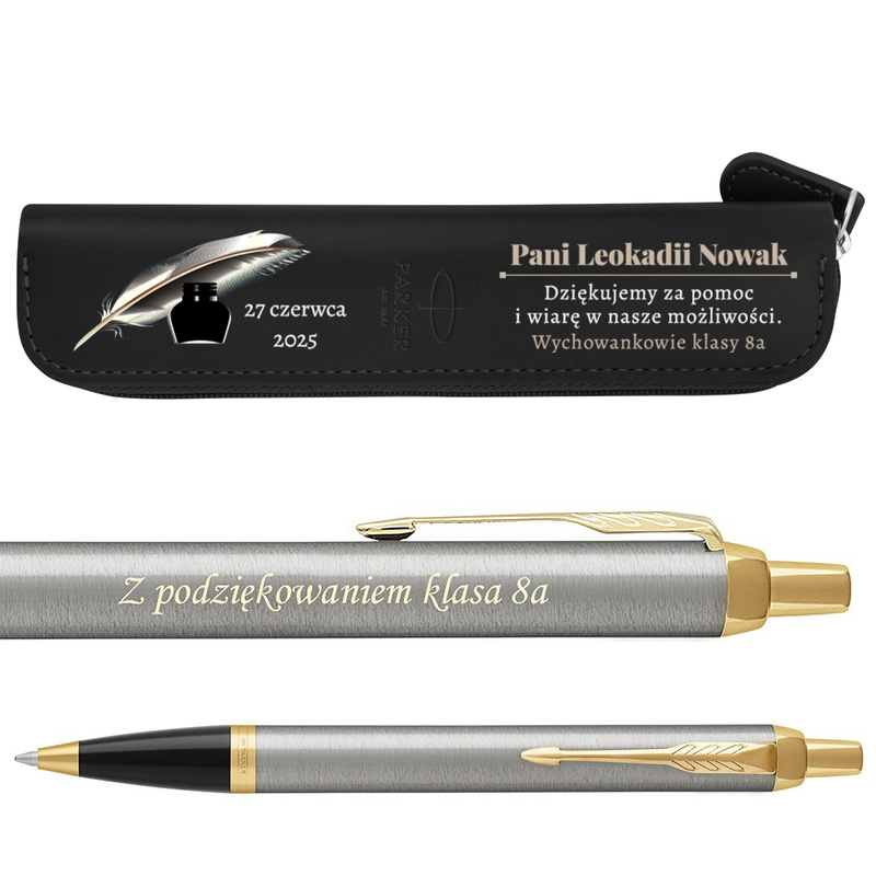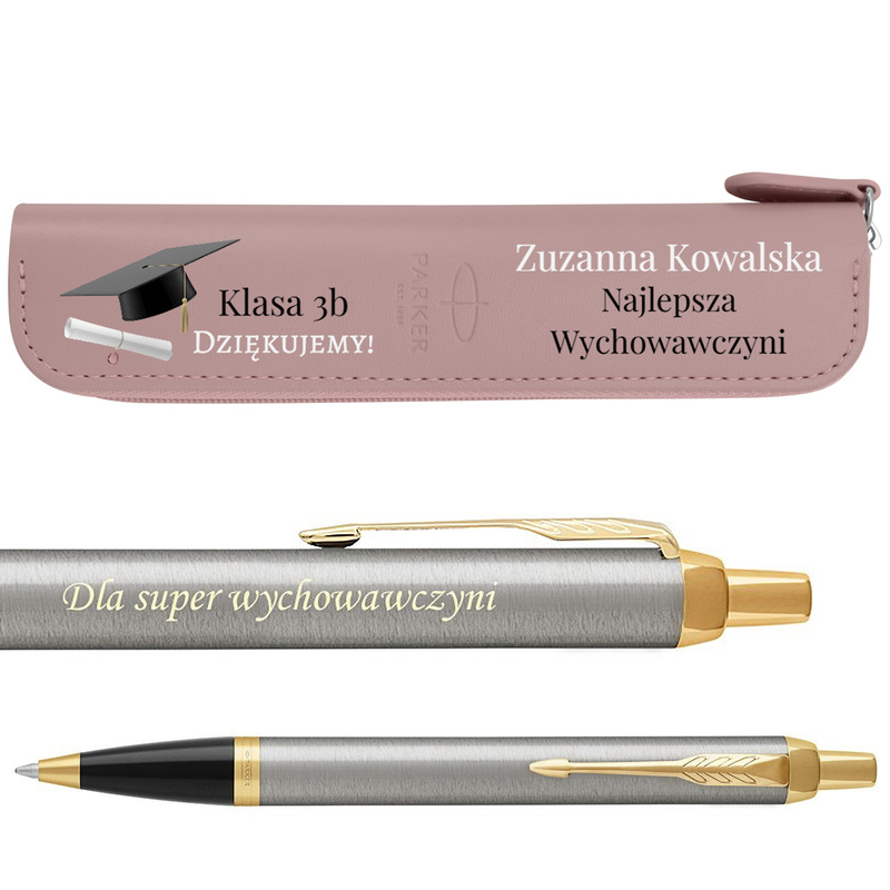 Długopis Parker IM Brushed GT z grawerem + Etui z Nadrukiem UV Prezent