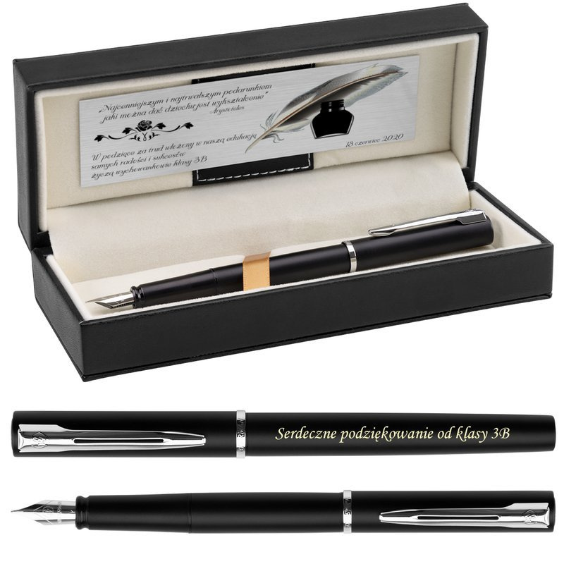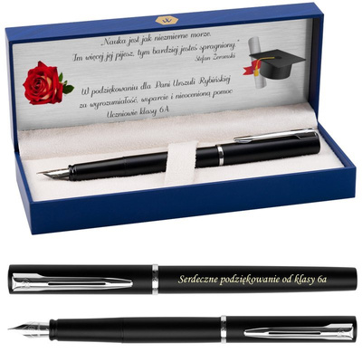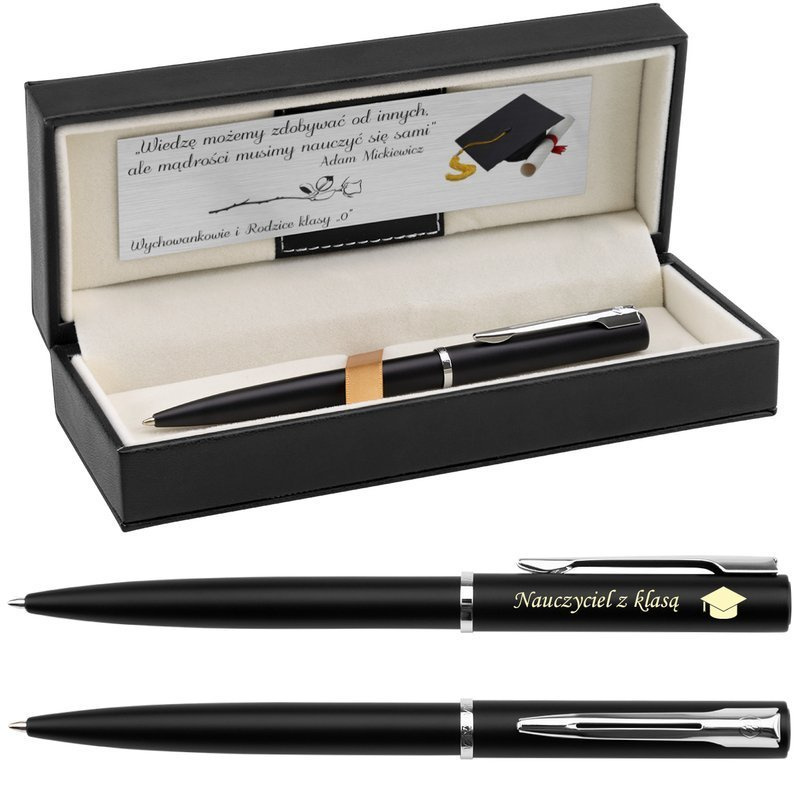 Prezent dla Wychowawcy / Pióro z Grawerem / Czarny Mat / Waterman Allure / Ozdobne Etui / Prezent na Zakończenie Roku