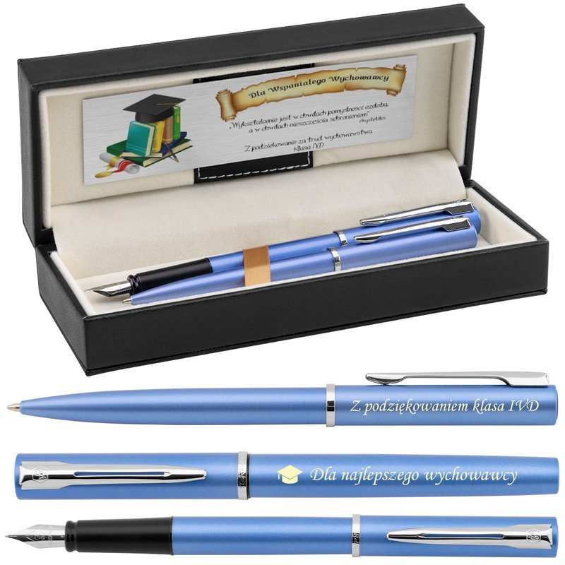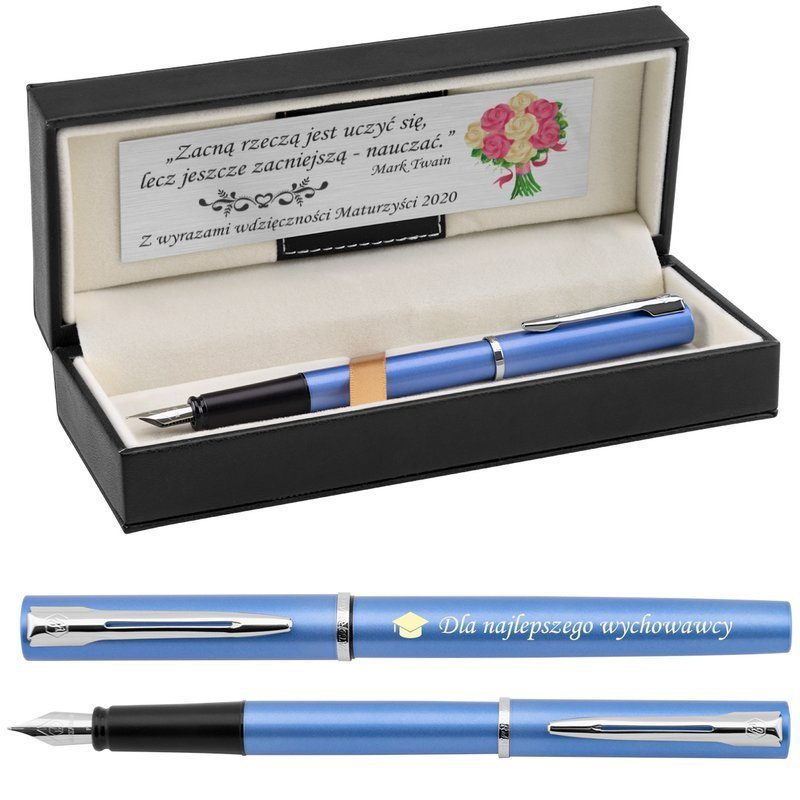 Prezent dla Wychowawcy / Pióro z Grawerem / Pastelowy niebieski / Waterman Allure / Ozdobne Etui / Prezent na Zakończenie Roku