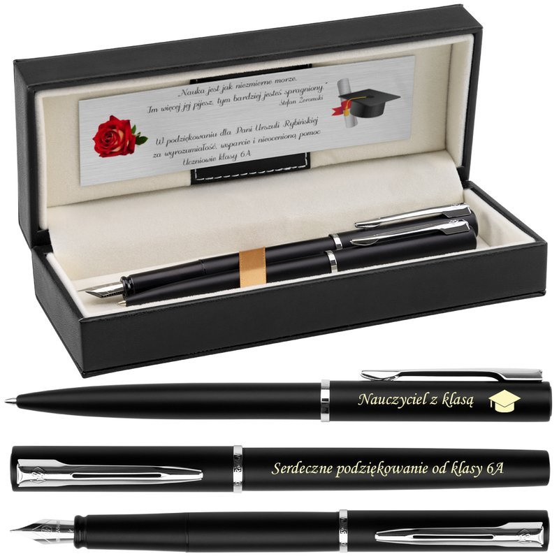 Prezent dla Nauczyciela / Zestaw długopis + pióro / Waterman Allure / Pudełko z Dedykacją / Prezent na Zakończenie Roku