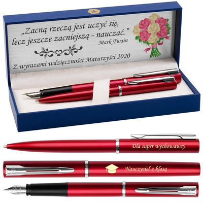 Prezent dla Wychowawcy / Zakończenie Roku / Zestaw długopis + pióro / Czerwone / Waterman Allure / Pudełko Waterman