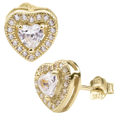 Pozłacane kolczyki pr.925 białe serduszka z cyrkoniami