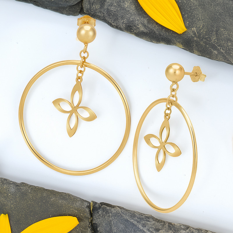 Pozłacane kolczyki koła z kwiatkiem 925 – prezent na rocznicę