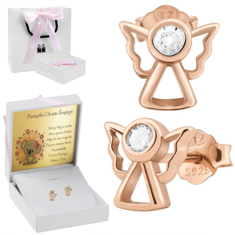 Pozłacane różowym złotem kolczyki aniołki z białą cyrkonią pr. 925