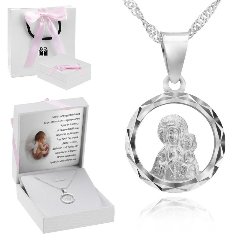 Srebrny Medalik Matka Boska Częstochowska Z Dedykacją