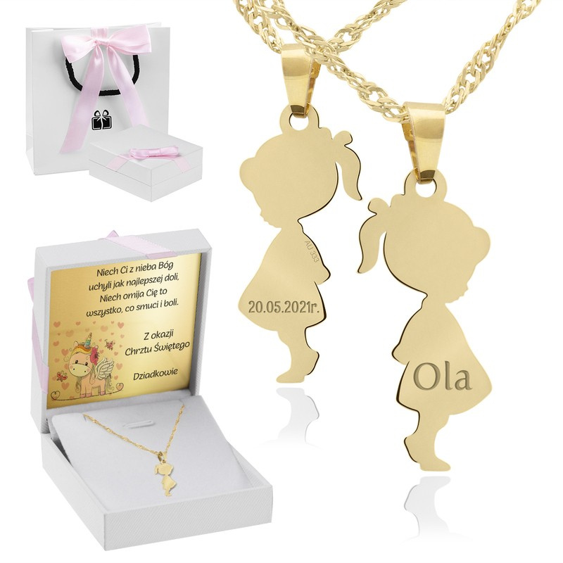 Złoty wisiorek z łańcuszkiem / Dziewczynka / Grawer / pr.333 / Pudełko z dedykacją + torebka.
