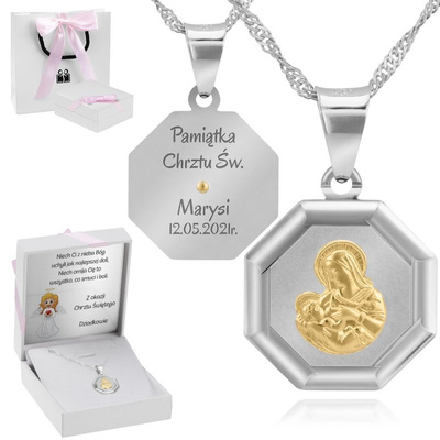Srebrny Medalik Matka Boska Karmiąca Pozłacana Grawer