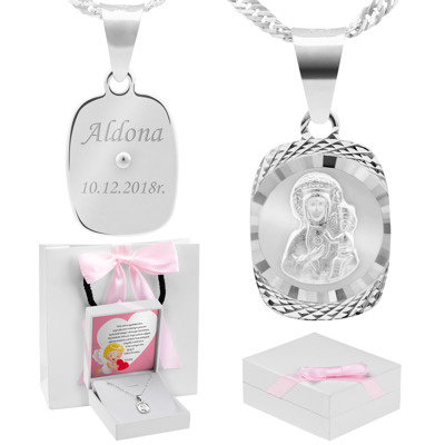 Srebrny Medalik Matka Boska Częstochowska Z Grawerem