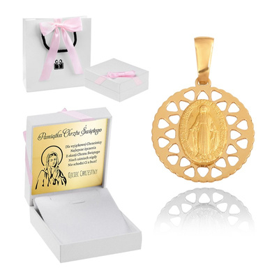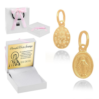 Złoty cudowny medalik / Złoto pr. 585 / Własna dedykacja / Pamiątka Chrztu dla dziewczynki / Prezent na Komunię