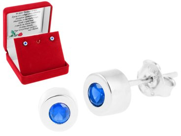 Okrągłe kolczyki pr.925 z szafirową cyrkonią i dedykacją