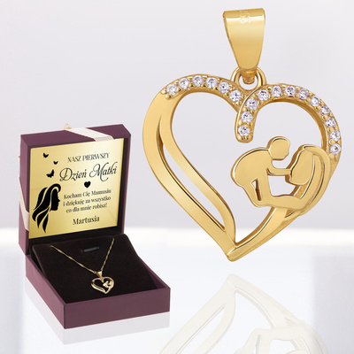 Dzień Mamy: pozłacany naszyjnik serce z cyrkoniami i dedykacją