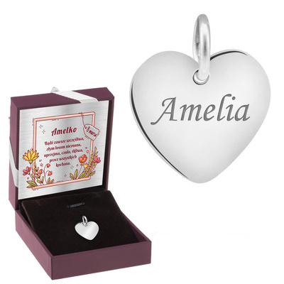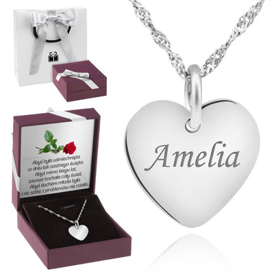 Wisiorek serce płaskie srebro 925 z grawerem i łańcuszkiem