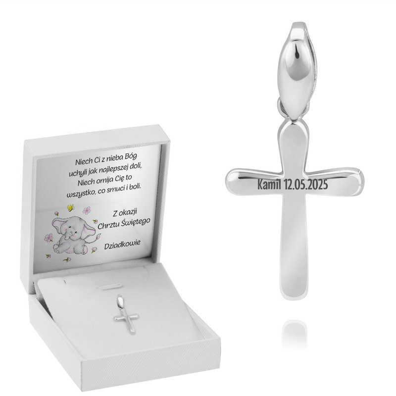 Krzyżyk Srebro pr. 925 Komunia Chrzest Grawer i Dedykacja