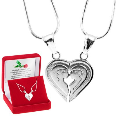 Wisiorek serce łamane Pocałunek srebro 925 z dedykacją w pudełku