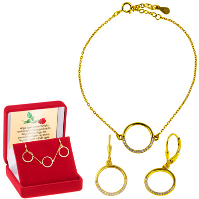 Zestaw bransoletka + kolczyki okrąg z cyrkoniami Srebro 925 Dedykacja