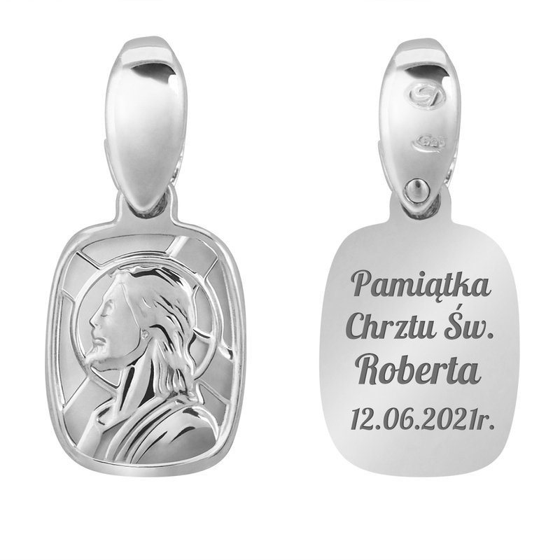 Srebrny Medalik Z Jezusem Na Chrzest I Komunię Grawer