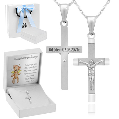 Srebrny 925 Krzyżyk z Jezusem Komunia Chrzest Grawer
