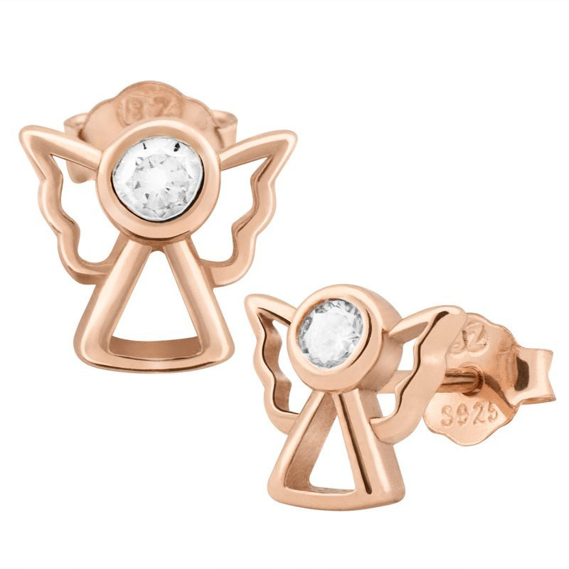 Pozłacane różowym złotem kolczyki aniołki z białą cyrkonią pr. 925