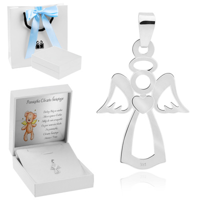 Srebrna zawieszka - Ażurowy Anioł z sercem - pr. 925 Dedykacja