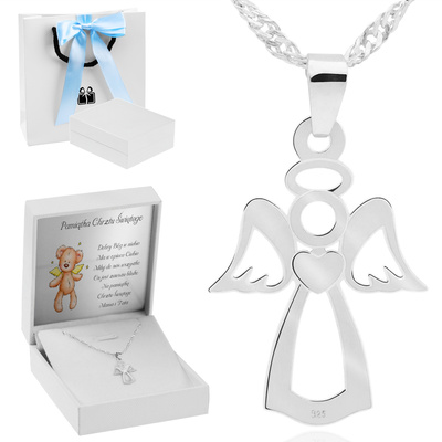 Srebrny 925 Krzyżyk z Jezusem Chrzest Komunia Bierzmowanie Grawer