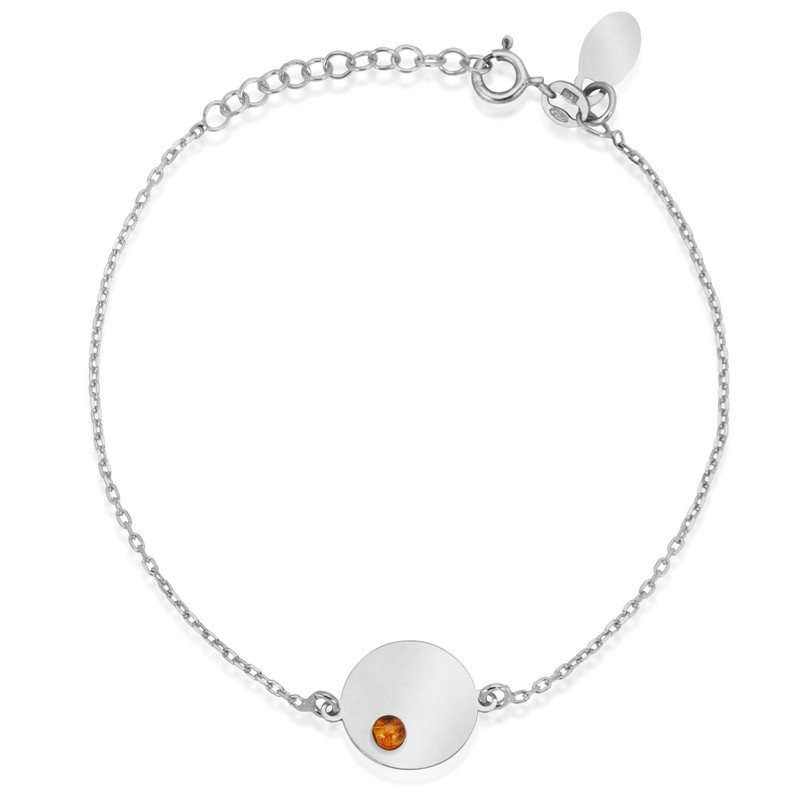 Bransoletka srebrna z bursztynem pr. 925 z grawerem inicjałów