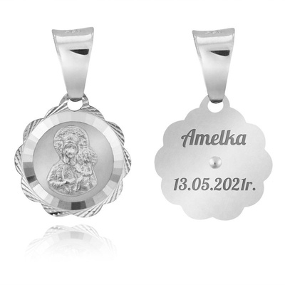 Srebrny Medalik Matka Boska Częstochowska Z Grawerem
