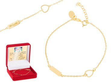 Bransoletka srebrna z pozłacanym sercem i blaszką pr. 925 GRAWER